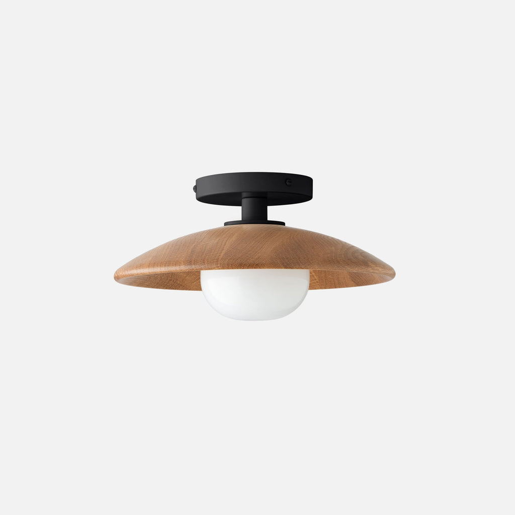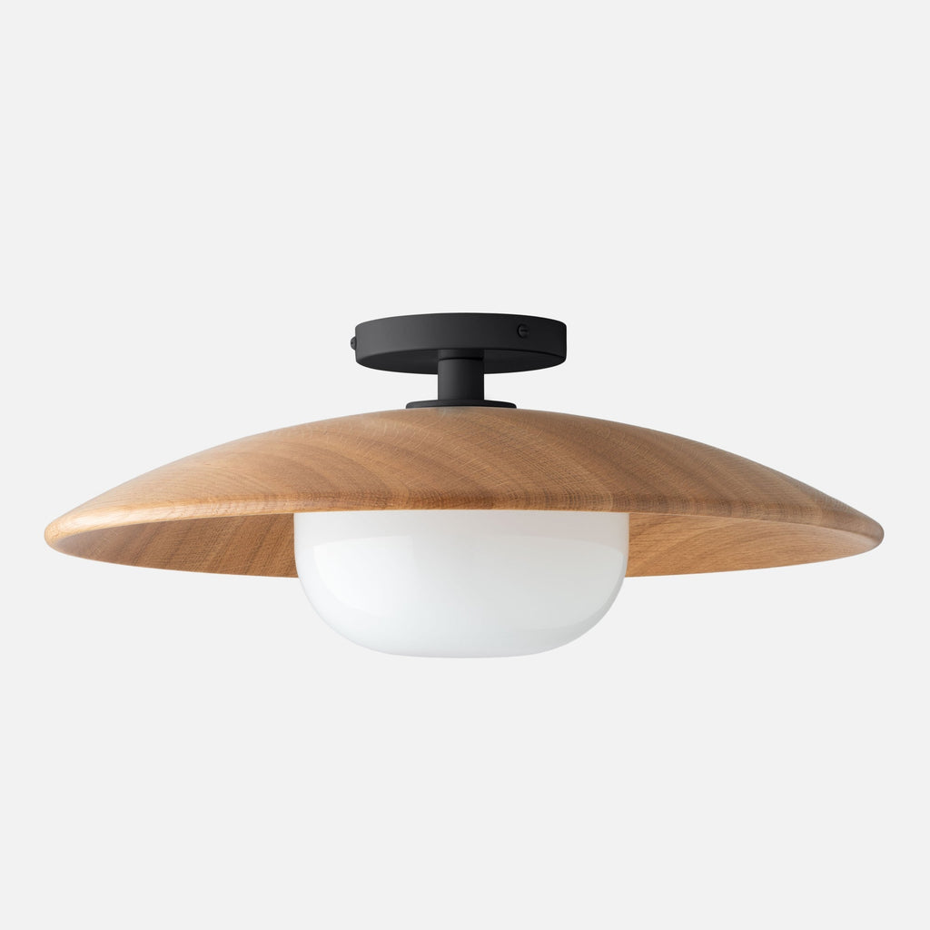With its sensuous and beautiful mix of materials—oak shade, metal fixture, opal glass—the Atwood Flush Mount’s modern curved design lets you celebrate the natural beauty of the wood as it flows seamlessly into the warm glow of the opal glass shade.